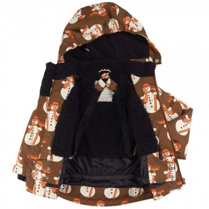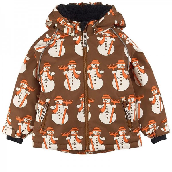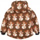 The jacket fabric is printed with nylon ink, which is environmentally friendly and does not fade.The fabric is soft and skin-friendly, and has the function of anti-splash and anti-seepage.Brown Snowman ski jacket for skiing and snowboarding. The jacket has a playful all-over print.